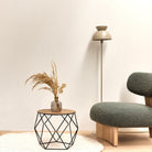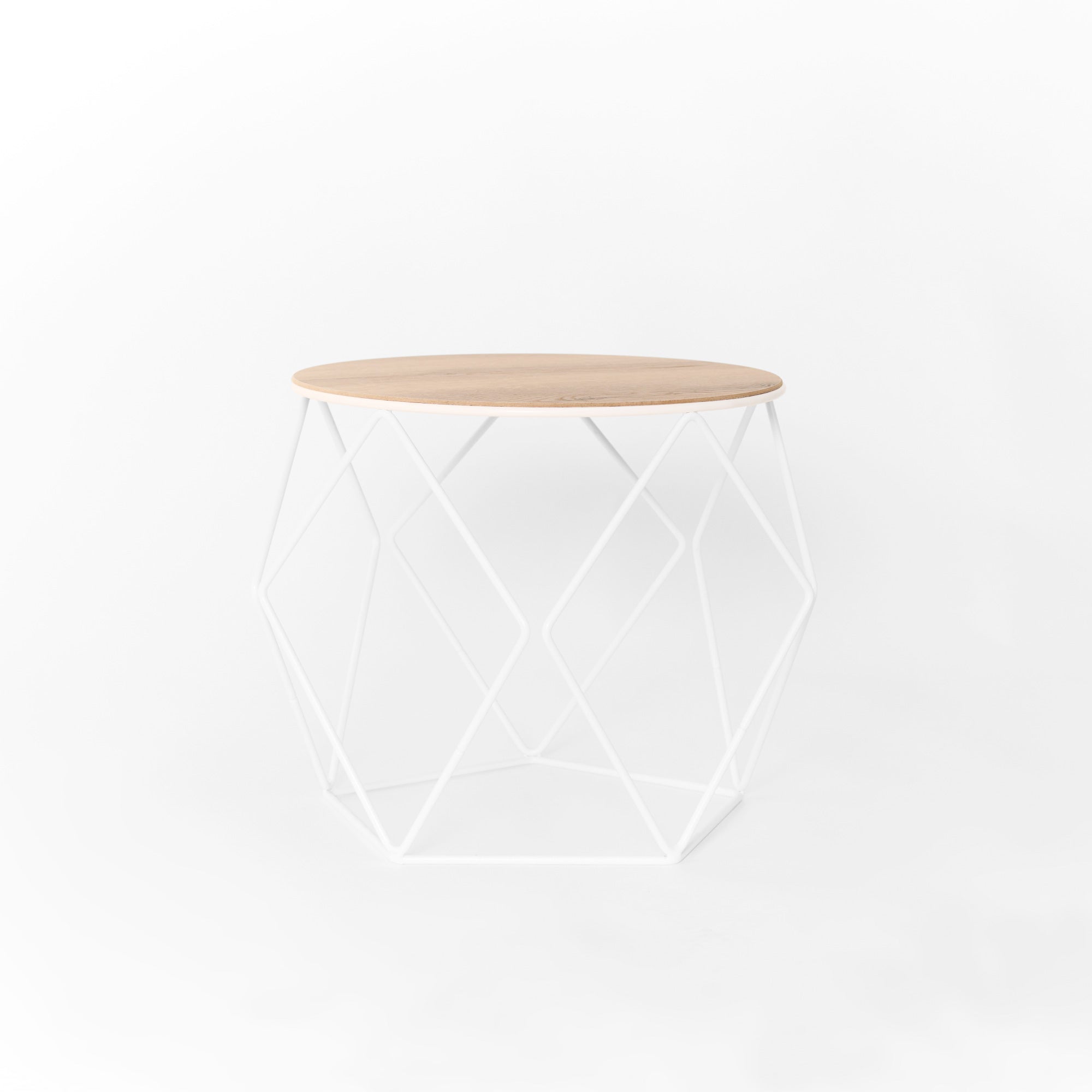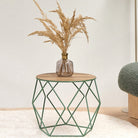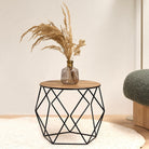 DESIGN MINIMALISTE – TABLE BASSE RONDE EN MÉTAL ET BOIS